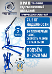 Профсерия. Не текут, не ломаются. Складной. г/п. 2 т. Вес крана 94 кг. Рабочий диапазон стрелы 1050-1590 мм. Диапазон подъема 0-2300 мм. Складывается стрела и нижние аппарели. Однотактный насос. Доставка РФ, РБ, Армения, Казахстан, Киргизия.