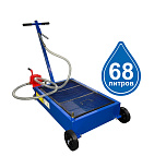Мобильная ванна для слива масла и антифриза. Ручка складывается. Емкость 65 литров с сеткой для улавливания мелких предметов. Чаша (воронка) для сбора масла не позволяет разбрызгивать масло и антифриз при сливе. Колёса 2 прямых + 2 поворотных. Для любых легковых и грузовых автомобилей. Масса 25 кг. Размеры тележки: (ДxШxВ) 700*500*250 мм.