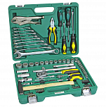Набор инструментов 1/4" & 1/2" 6-гранный (в кейсе) 85 предметов. В наборе: головки торцевые 1/4", головки с насадкой HEX 1/4", головки с насадкой TORX 1/4", головки с шлицевой насадкой 1/4", головка с насадкой PH 1/4", насадки PZ 1/4", головки торцевые 1/2", свечная головка 1/2", насадка 5/16 HEX 1/2", насадки 5/16 TORX 1/2", насадки 5/16 PH 1/2" для ударной отвертки PH3, PH4, насадки 5/16 PZ 1/2", держатель бит: 1/2х5/16, трещотка 1/4 36 зубцов (резиновая ручка), удлинитель 1/4 50 и 100мм, кардан 1/4", вороток-отвертка 1/4", вороток 1/4" с плавающей головкой, гибкий вал 1/4", трещотка 1/2 36 зубцов, удлинитель 1/2" 125 и 250мм, кардан 1/2", переходник 3/8х1/2 с отверстием, ключи рожково-накидные.