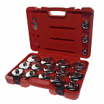Набор съемников масляных фильтров ("чашки") - 14 шт. Съемники изготовлены в форме чашек из прочного металла и способны выдерживать большие нагрузки. Каждая чашка снабжена усиленной площадкой с посадочным квадратом. Конструкция съемников в форме крышек исключает повреждение масляного фильтра при его снятии и установке. Возможность использовать привод с посадочным квадратом 1/2"; 3/8"; гаечный ключ или торцевую головку на 21 мм.