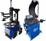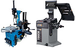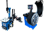 Комплект из автоматического шиномонтажного станка TS-3226А. Для дисков: 11÷24”. В комплекте: полноценная 3-й рука для работы с жесткой и низкопрофильной резиной RUNFLAT. + встроенный бустер 24 литра (взрывная подкачка) + пистолет для подкачки шин + монтажка + регулятор давления с влагоотделителем и манометром. + Proxy-8-3 автоматический балансировочный станок для колес с диаметром диска 9-28 дюймов, при ручном вводе до 30 дюймов и шириной до 20 дюймов. В комплекте: монитор SVGA + кожух с автозапуском + клещи + кронциркуль + пневмоприжим + набор конусов + лазерная навигация + электромагнитный тормоз + ультразвуковой датчик ширины.