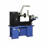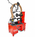 Для правки сложных ремонтов всех видов, в том числе «восьмерок», спиц (от 22-х дюймов, ремонт с мобильным кронштейном). Рама допускает нагрузку до 12 тонн. Вал из стали особой прочности. Станок оснащен специальными болтами, усиленной планшайбой и электроприводом вращения вала, который облегчает зоны правки и качество работ. Конструкция гидроцилиндра фиксирует его в любом положении так, что правка производится одной рукой, без удержания гидроцилиндра на весу.