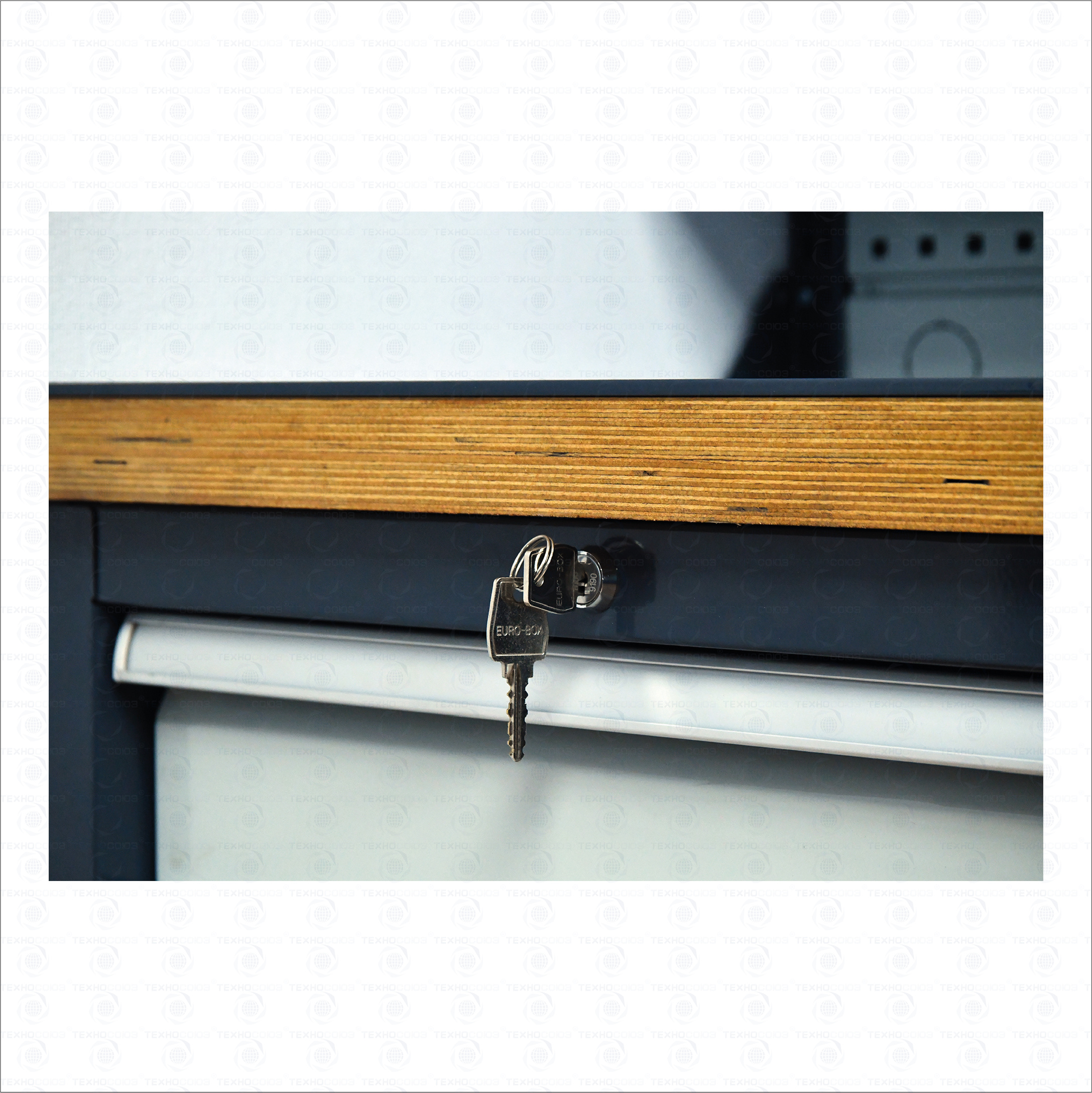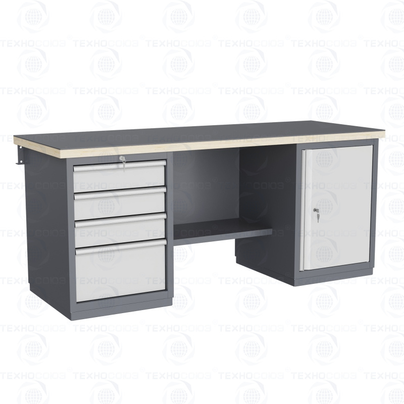 Тумбы и опоры верстаков выполнены из профилированной холоднокатаной стали и имеют сварную конструкцию. Возможна установка любых сочетаний тумб с различным количеством выдвижных ящиков, а также с дверцей и полками. Между тумбами и опорами возможна установка полки-стенки. На каждой ручке ящика и двери закреплен специальный алюминиевый профиль с отделением для установки маркировки. На тумбы с выдвижными ящиками установлена система антиопрокидывания, которая ограничивает выдвижение остальных ящиков тумбы, если один из ящиков выдвинут. Ящики снабжены специальными усиленными шариковыми направляющими. Тумбы снабжены центральной системой запирания.
