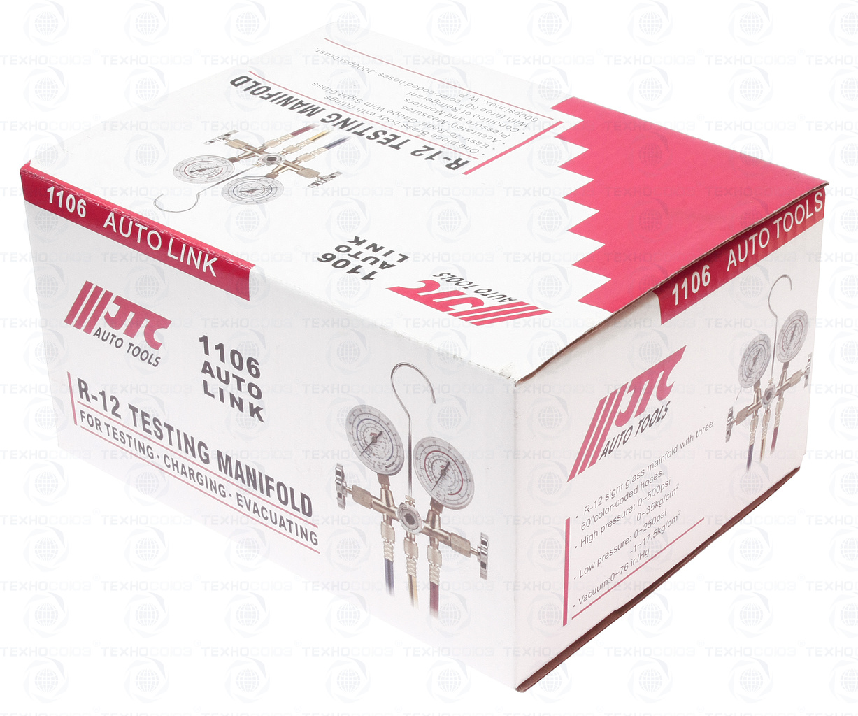 JTC-1106 Коллектор манометрический для хладагента R-12, длина шлангов 150см JTC /1/12