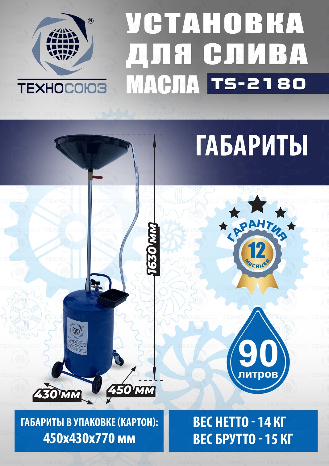Для слива «отработки» самотёком из любых транспортных средств. Ёмкость бака 80л.+10л. приёмная воронка. Регулировка высоты чаши 980-1630мм. Визуальный контроль уровня заполняемости бака. Слив собранной в баке «отработки» самотёком или под давлением. Лоток для сливной пробки/инструмента. Для применения в гараже, автосервисе, предприятии.