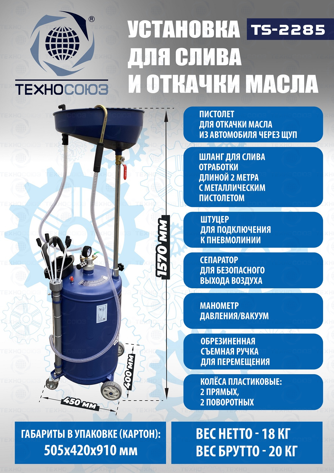 Технические особенности установки для слива и откачки масла щупами TS-2285: